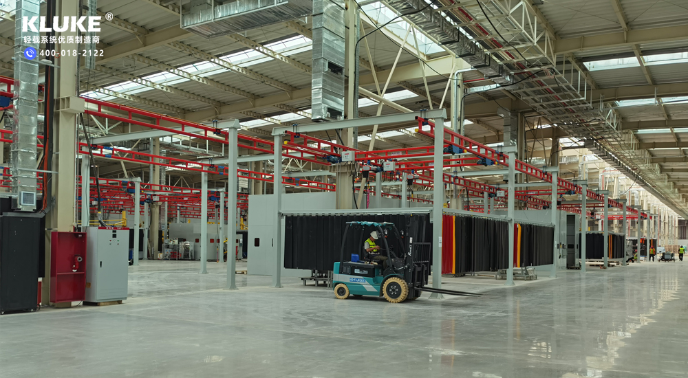 使用者評(píng)語(yǔ):“這是我們的新建廠房,也是接待上下游客戶參觀考察的重點(diǎn)區(qū)域。使用克魯克起重機(jī)的組合方案后,我們不僅提升了工作效率,節(jié)省了人力成本,還提高了工人滿意度,……這個(gè)工位成為我們的樣板。更重要的是,克魯克產(chǎn)品整體提高了生產(chǎn)的裝配質(zhì)量,我們的上下游客戶都很滿意,提高了成單量。 ”