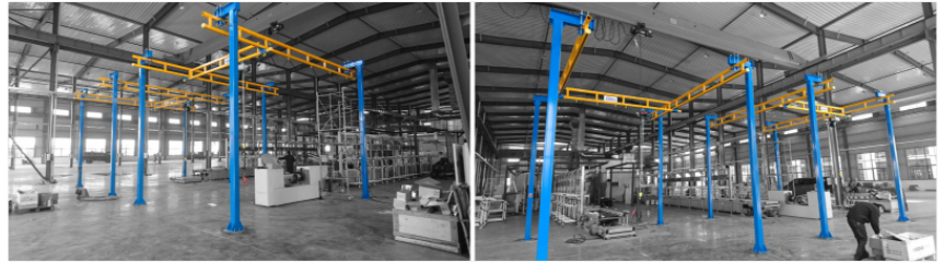 ● 客戶廠房設計時屋頂和立柱都沒有考慮額外的承重,克魯克組合式起重機自帶支撐結構,對廠房屋頂無壓力;